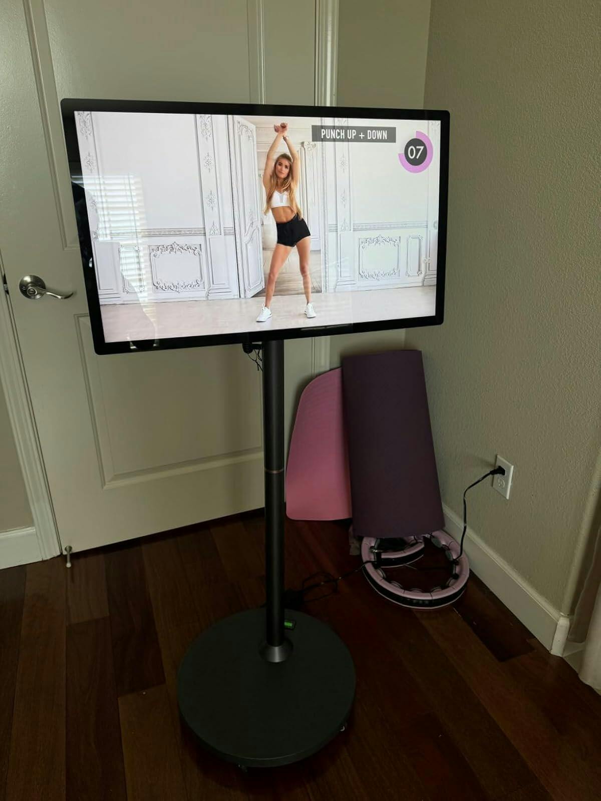 This rollling tv is convenient for wireless use and is easy to move around. I particularly like using it in the garage, as it doesn’t need to occupy an outlet. It makes doing DIY projects and repairs much more manageable without the hassle of cords.