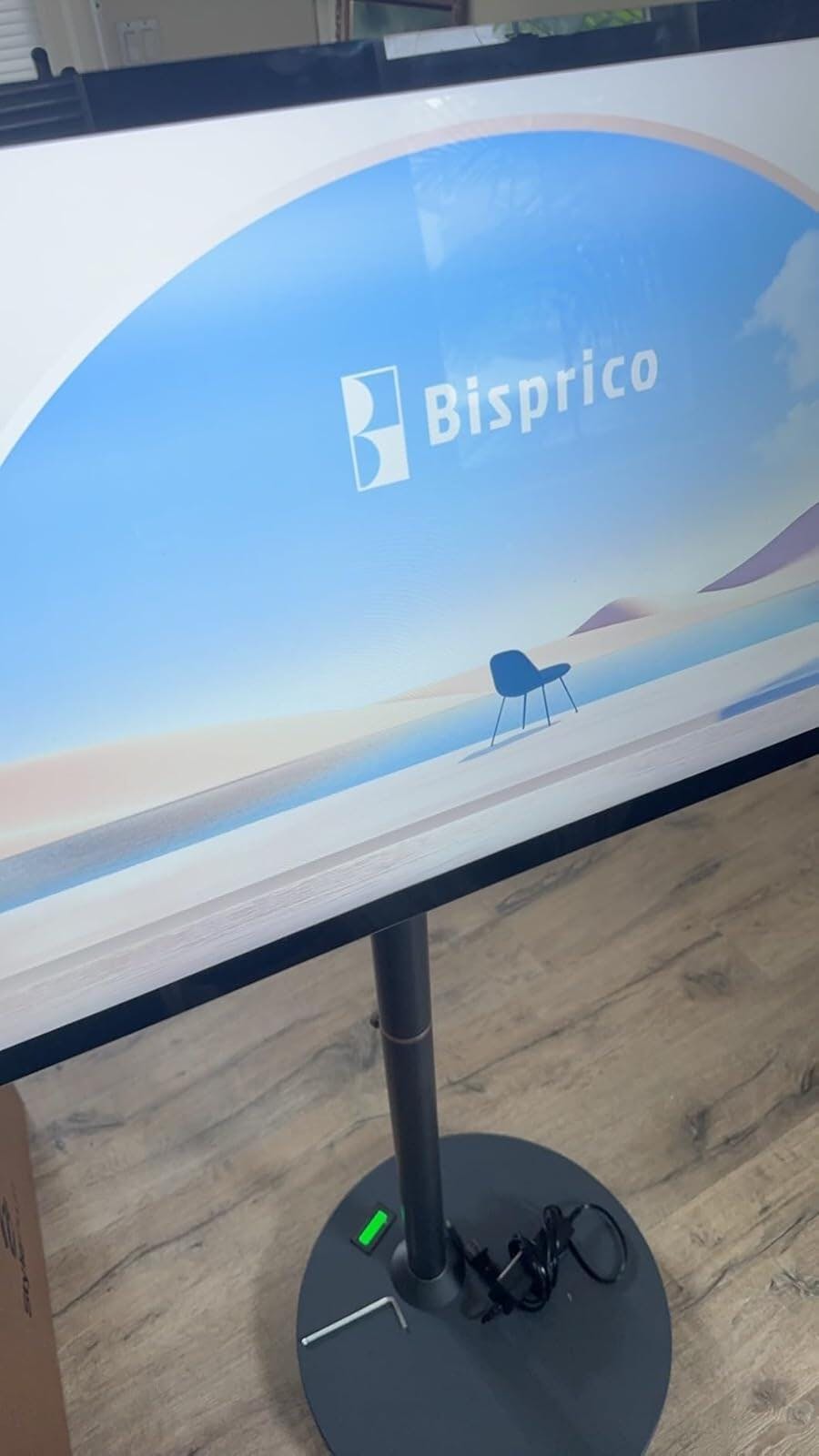 - Bisprico Move With Mood:Five silent swivel wheels in the movable and rechargeable base allow you to easily roll the 1080P Smart Tv over different surfaces even on carpet from room to room.You can smoothly move it to different areas,such as living room,kitchen,bedroom.dinning room or even outdoors.Experience the convenience of our smart, portable TV with rolling wheels. Use it effortlessly, whether for work or entertainment, anytime, anywhere.